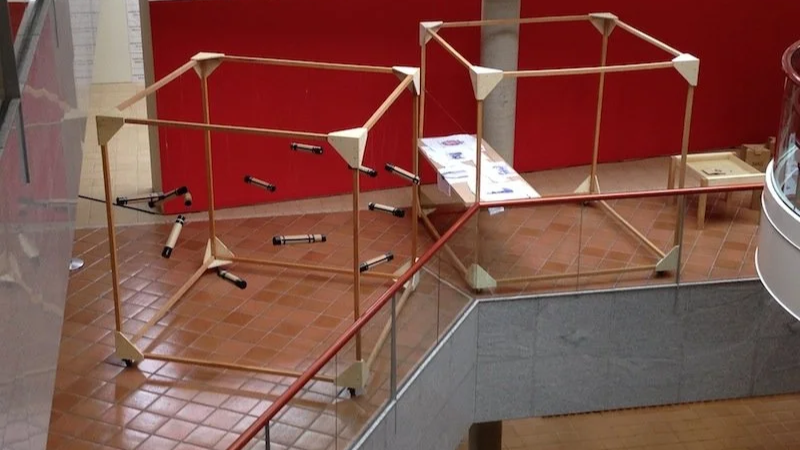 Alexandre Silveira and I created Cluster by drawing on the Poipoidrome's modular architecture and its structural principle of a "creative circuit" for visitors, where each module offered a different creative experience. We reconfigured these modules to engage with the Frestas exhibition's architecture and layout design, fostering connections with the work of participating artists Antoni Muntadas, Ana Teixeira, Tiago Judas, and others, as well as the educational and art mediation teams. This engagement echoed Filliou and Pfeufer's original questions and prefigured a methodology for the reactivation of theoretical principles and structures.