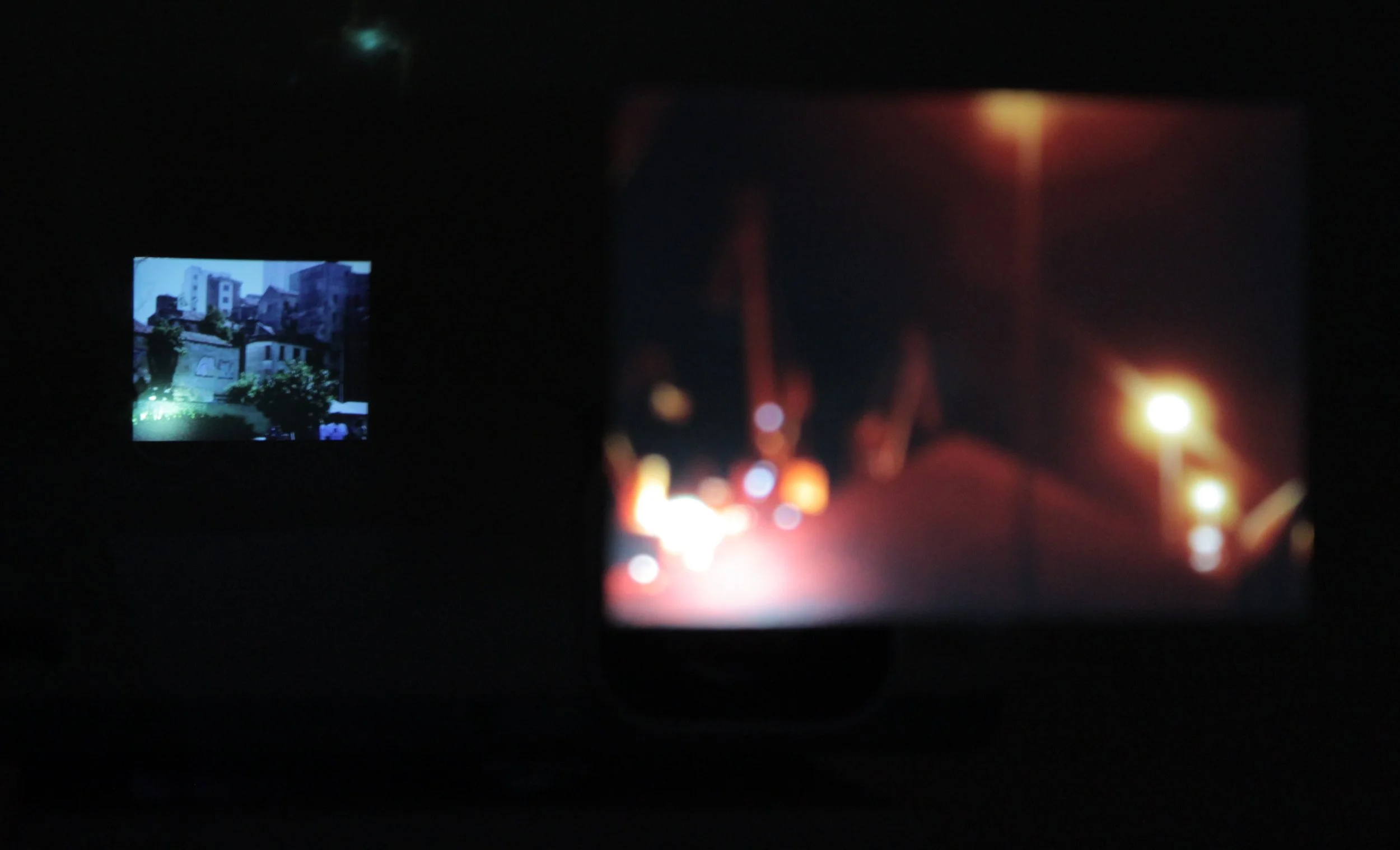 The work culminates in two simultaneous installations where our films are projected and layered, allowing the separate urban spaces to visually converge and interact. This deliberate superimposition of images creates a single, blended reality that challenges the viewer's perception of distance, memory, and connection.